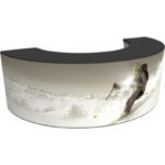 Premium aluminum tube frames with cam lock assembly- Easy to store and ship- Countertop and base (come in a variety of colors)- One push-fit fabric graphic- Countertop Dimensions: 120″W x 1.18″H x 24″D- Inside Radius 2′- Outside Radius 5′- Counter top Max Weight Capacity: 45 lbs