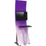 Economy aluminum tube frame with spigot assembly- Easy to store and ship- Quick to set up- Pillowcase fabric graphic- Kit includes: medium monitor mount, can hold 32″ – 55″ monitor/ max weight 40 lbs