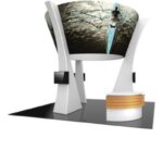 Kit includes: fabric-covered tower centerpiece, zippered white fabric columns, laminate counter, three monitor mounts, and 1 wood crate- Combines 50mm aluminum tubing w/ heavy-duty spigot connectors with state-of-the-art zipper pillowcase dye-sublimated fabric graphics Dimensions of exhibit elements: – Cone Tower – 81″H x 202″dia.- Support beams – 18’H- Counter – 79.89″W x 40.5″H x 31.12″D – Easily incorporate monitors and AV into the support structures to add multimedia – Laminate counter with UV printed slat walls provides a welcoming reception area and lockable storage- 3 large monitor mounts, can hold monitor 26-40″ / max weight is 75 lbs each- Internal LED lights are not included, can be purchased a la carte