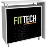 Laminate cabinet and accent L-shape panel are available in four color options: dove grey, black, designer white and fusion maple- Rental counters available in designer white laminate option only- Dye-sublimated push fit graphic, either opaque or backlit- Rear locking storage door- Durable aluminum extrusion feet and L-shape accent offsets- Counter can hold a max weight of 50 lbs- Easy step-by-step instructions- Kit includes laminated cabinet, locking storage door, one push-fit graphic with backlighting, L-shape laminate accent and one woodcrate case