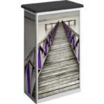 Custom appearance- Easy to assemble- Aluminum frame construction – UV graphic panels- Rear locking door- Internal shelf- Tabletop available in four finishes: silver, black, mahogany and natural- Counter can hold a max weight of 50 lbs- Installation tool included- Optional tabletop, leg and graphic customizations available- Interior Cabinet Dimensions: 22″W x 38″H x 12″D- Tabletop Dimensions: 25.5″W x 1″H x 15.1″D