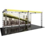 10′ x 20′ kit size- Custom appearance- Toolless assembly- Simple twist and lock design Kit includes:- 21 x 6-way junction boxes- 6 x 36″ straight truss lengths- 24 x 46″ straight truss lengths- full set of quicklock connectors- 4 x Lumina 1, 50 watt spotlights- 1 x OCF molded case- 1 x OCF2 molded case Graphic materials: Dye sublimated fabric panels
