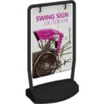 Economy black steel tube frame- Double ring mounting clips securely hold single or double-sided graphics- Fillable base features integrated wheels- Graphic prints on 6mm PVC board