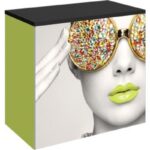 Feature push-fit dye-sublimated fabric graphics and simple extrusion based frames- Choose from four tabletop finishes: silver, black,mahogany and natural- Easy step-by-step instructions- Access extra storage by removing one fabric panel- Counter can support a max weight of 30 lbs